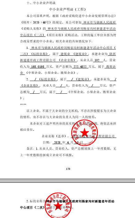 合同包1(刘杨家沟村新建老年活动中心项目(二次)):